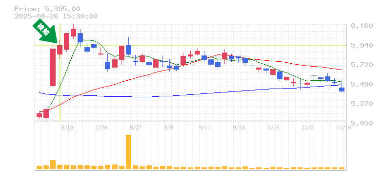 この銘柄は、最近の株価動向から見ると上昇トレンドにあり、特に終値が5800円を超えてきたことはポジティブなサインです。過去数日の高値と安値の動きからも、上昇圧力が感じられます。移動平均線も上昇傾向にあり、短期的にはさらなる上昇が期待されます。トレンドを維持するためには、5800円をサポートラインとして意識することが重要です。