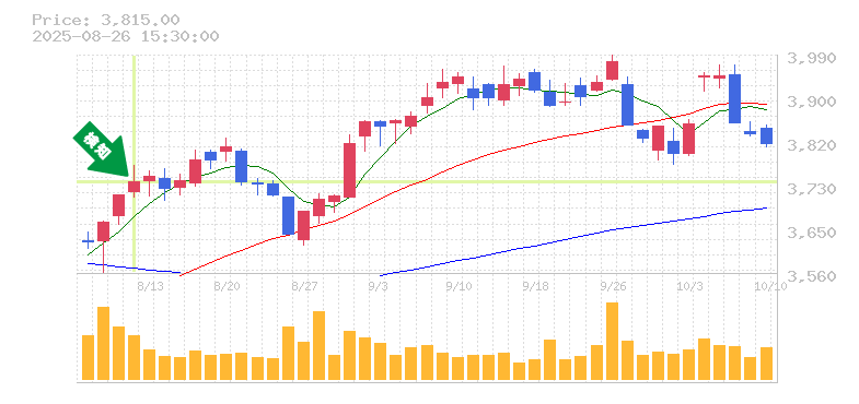 リスク管理の観点からは、過去の安値を参考にした場合、損切り価格はおおよそ3500円前後が妥当かと思います。これにより、急な逆行に対する防御策を講じつつ、上昇トレンドを享受することが可能です。