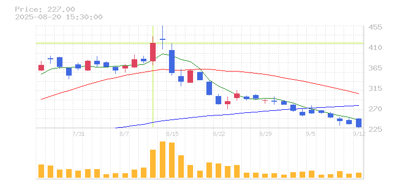 | 株価:415円(10.67%)前日比:+40 | ||||
