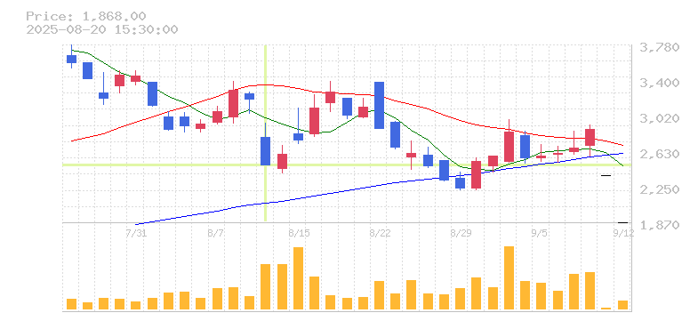 | 株価:2,490円(-21.94%)前日比:-700 | ||||