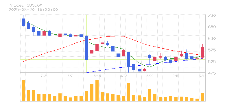 | 株価:530円(-15.87%)前日比:-100 | ||||