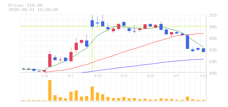 株価:284円(22.41%)前日比:+52