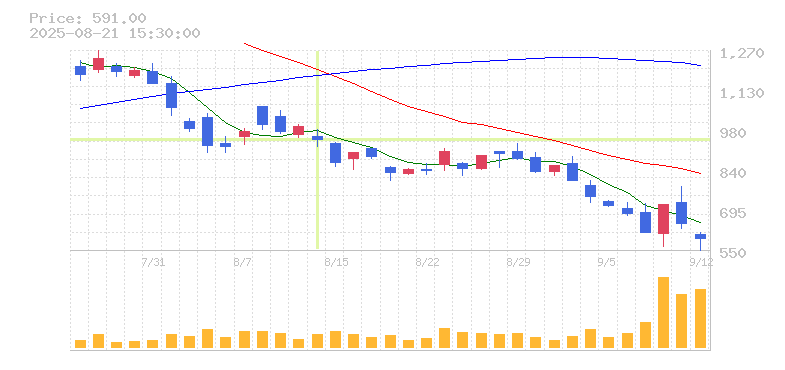 株価:948円(-4.53%)前日比:-45