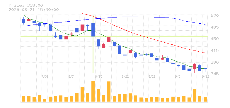 株価:455円(-6.57%)前日比:-32