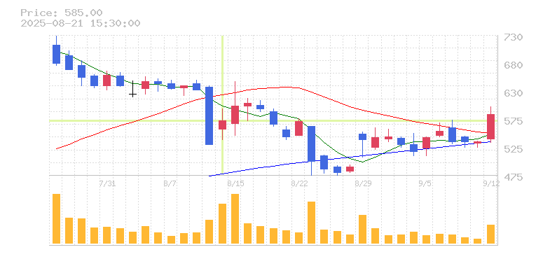 株価:574円(8.3%)前日比:+44