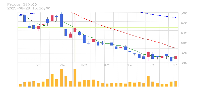 | 株価:353円(7.29%)前日比:+24 | ||||