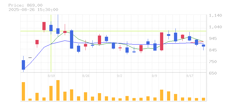 | 株価:886円(-1.56%)前日比:-14 | ||||