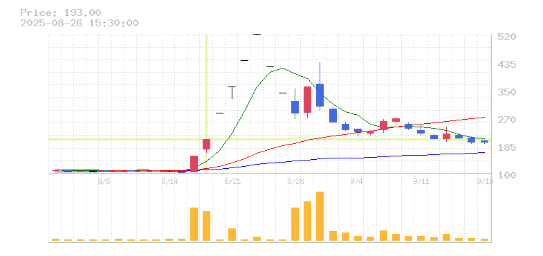 | 株価:202円(32.89%)前日比:+50 | ||||