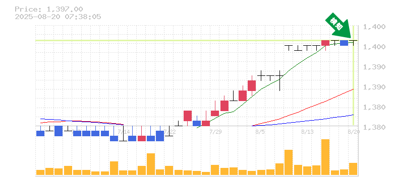 終 値:1397円