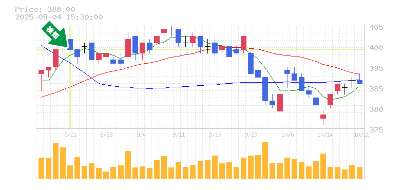 リスク管理の観点からは、過去の安値を基準にした損切り価格として、380円前後を目安にするのが良いでしょう。このラインを割り込むと、トレンドの反転を疑う必要がありますが、現在の価格帯では依然として上昇の可能性が高いと考えられます。