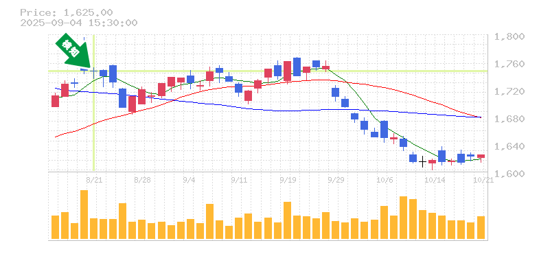 株価は最近、安定した上昇トレンドを見せており、特に高値と安値の幅が縮小している点が注目されます。移動平均線は短期的な価格動向を示しており、全体としてポジティブな流れを維持している印象があります。短期的には、価格が1730〜1750円のレンジに収束していることから、今後の動きに期待が持てます。
