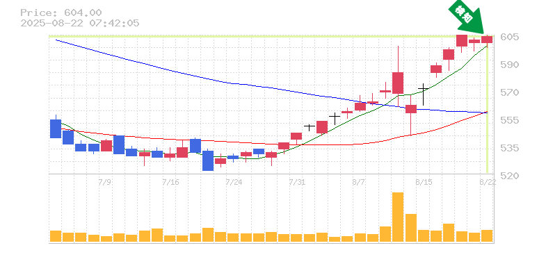 終 値:604円