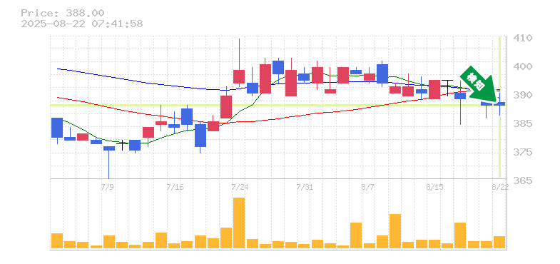 終 値:388円