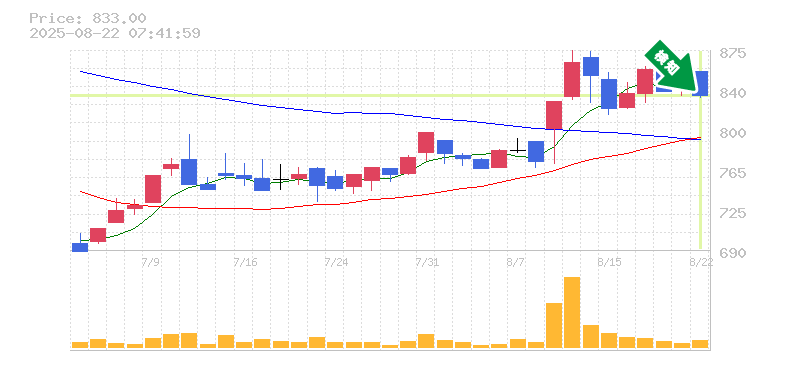 終 値:833円