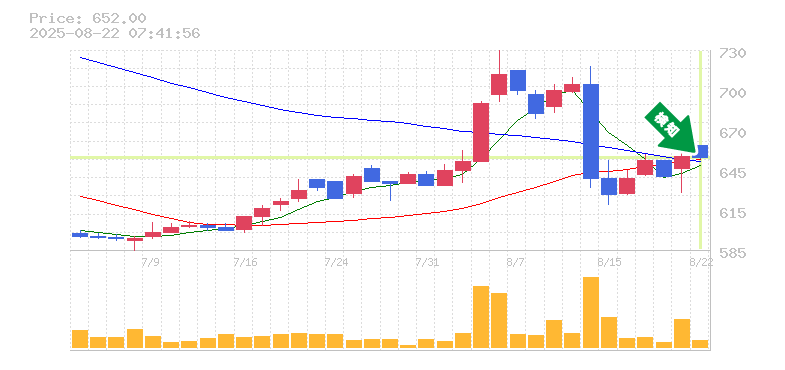 終 値:652円