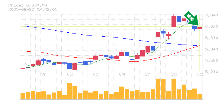 終 値:6630円