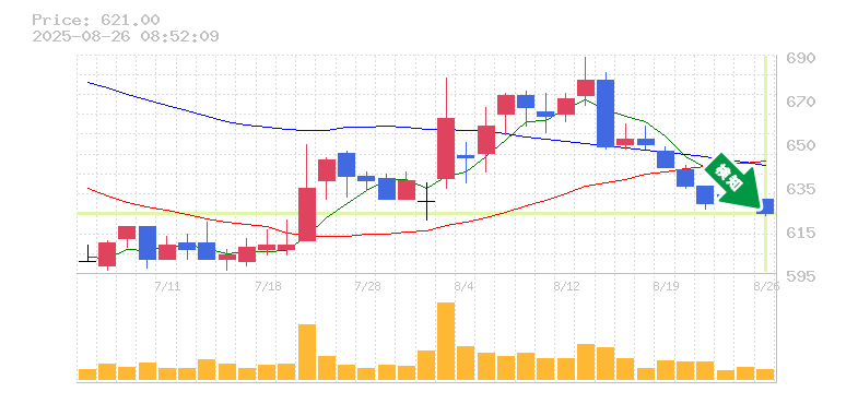 終 値:621円