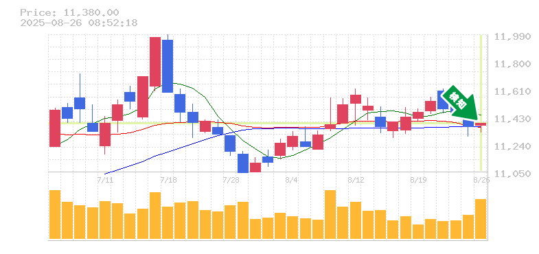終 値:11380円