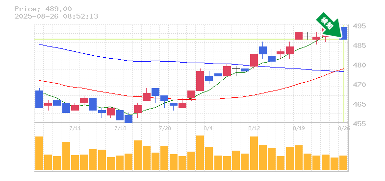 終 値:489円