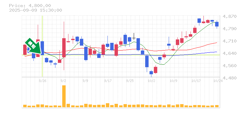 リスク管理の観点からは、損切り価格を約4500円付近に設定することが考えられます。これは過去の安値を考慮しつつ、さらなる下落リスクを抑えるための目安です。この銘柄は、今後の市場環境や企業のファンダメンタルズによっても影響を受けるでしょうが、現在のトレンドが持続するならば、さらなる成長の可能性があります。投資家としては、慎重な監視と共に、ポジティブな展望を持つことが大切です。