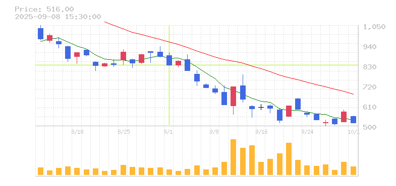 | 株価:831円(-5.46%)前日比:-48 | ||||