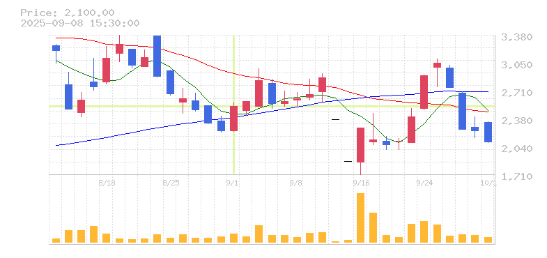 | 株価:2,528円(13.21%)前日比:+295 | ||||