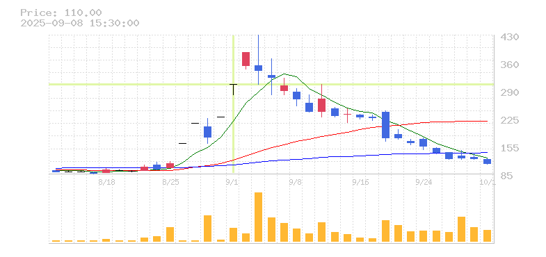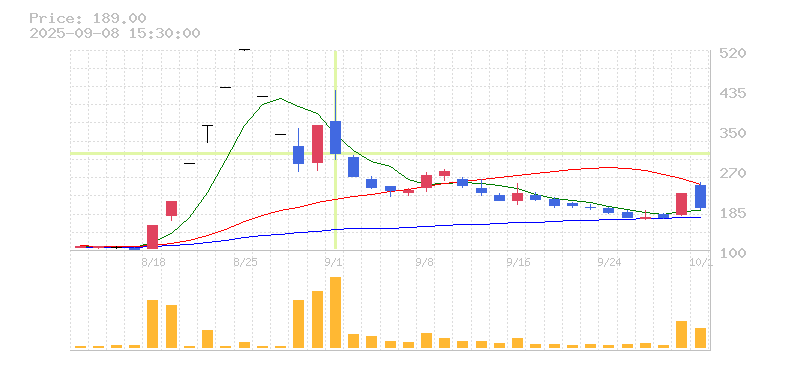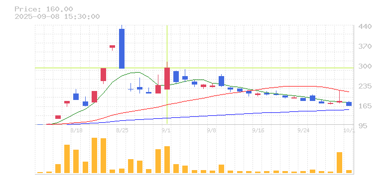 | 株価:302円(-16.57%)前日比:-60 | ||||