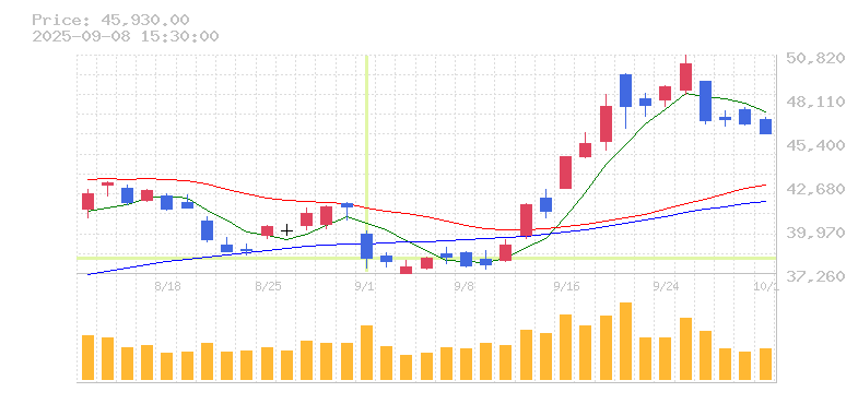 | 株価:38,160円(-7.71%)前日比:-3190 | ||||
