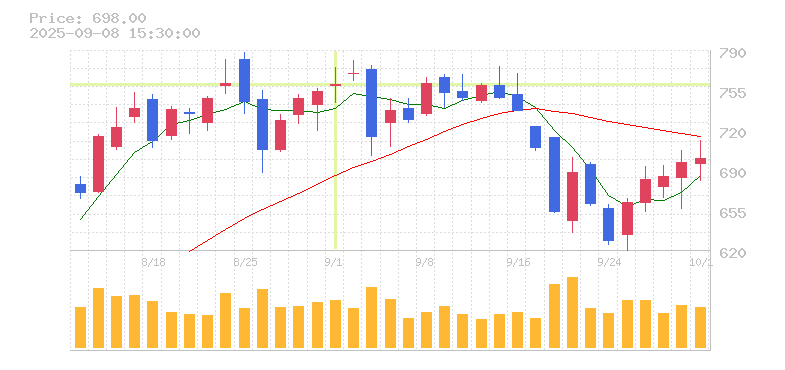 | 株価:761円(0.74%)前日比:+5.6 | ||||