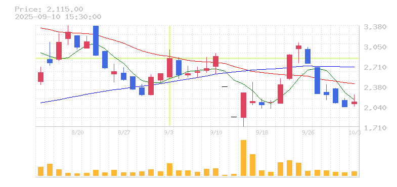 株価:2,836円(9.97%)前日比:+257