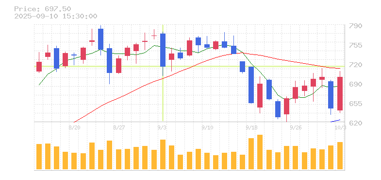 株価:716円(-6.99%)前日比:-53.8