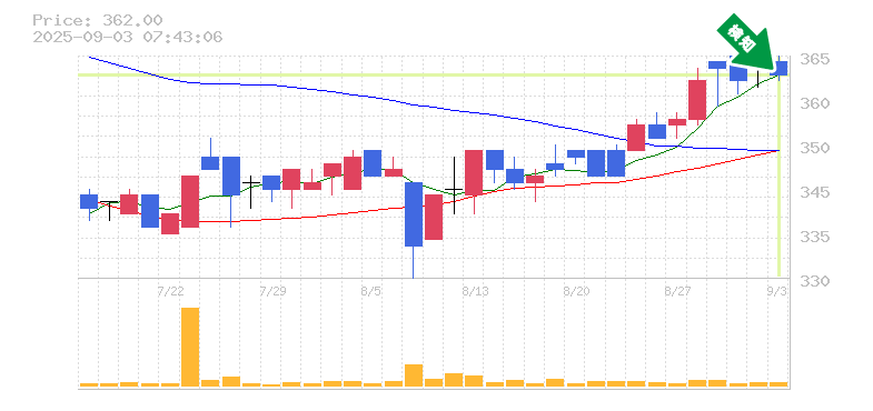 終 値:362円