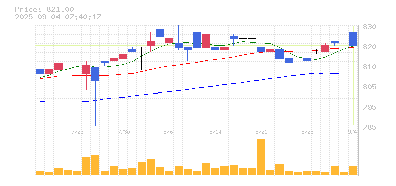 終値:821円