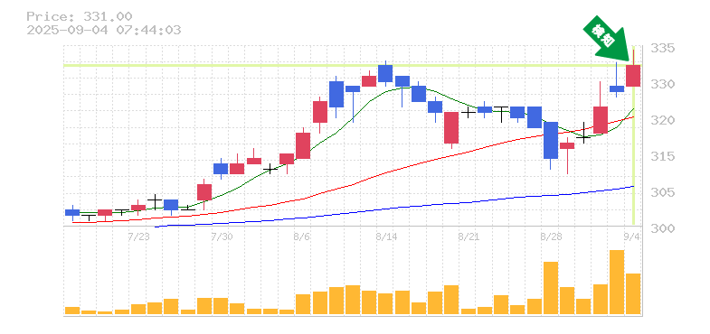 終 値:331円