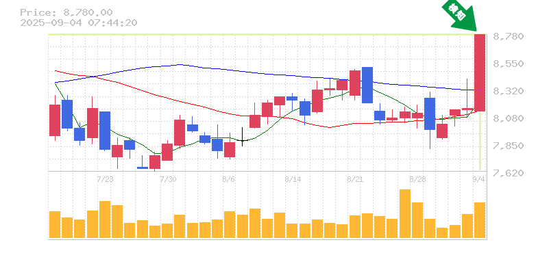 終 値:8780円