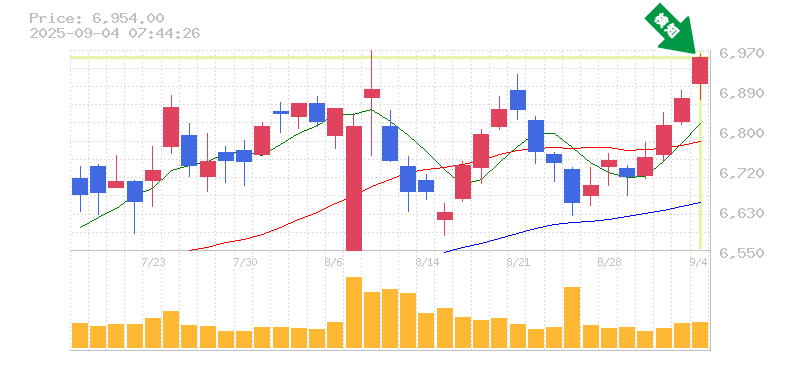 終 値:6954円