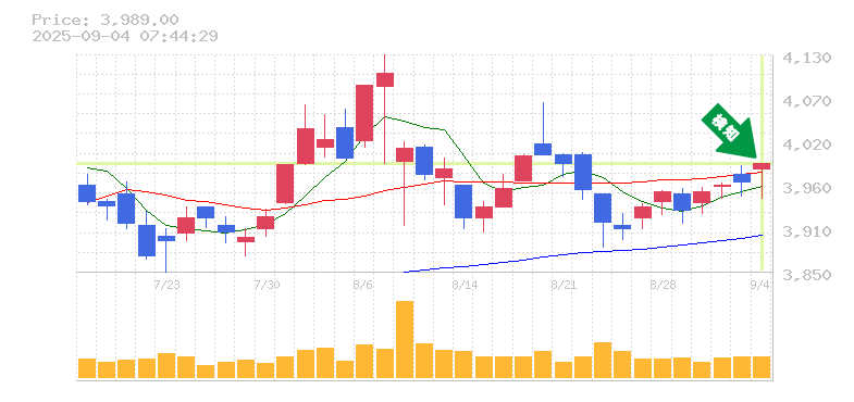 終 値:3989円