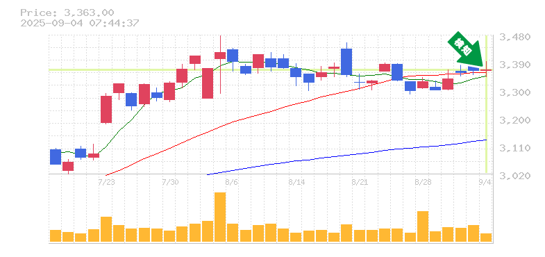 終 値:3363円