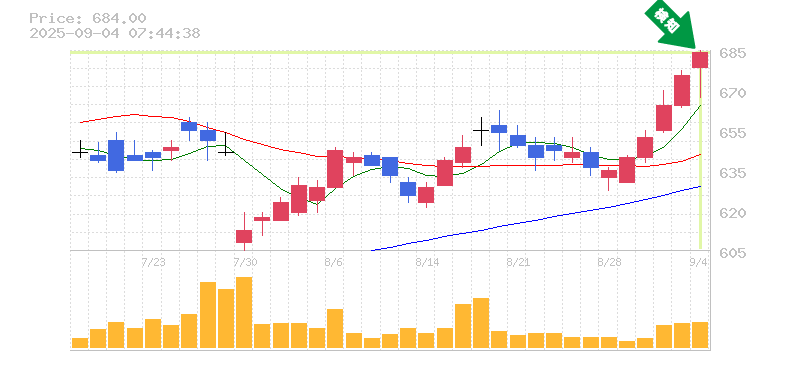 終 値:684円