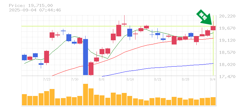 終 値:19715円