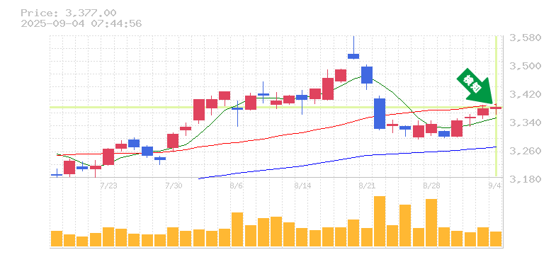 終 値:3377円