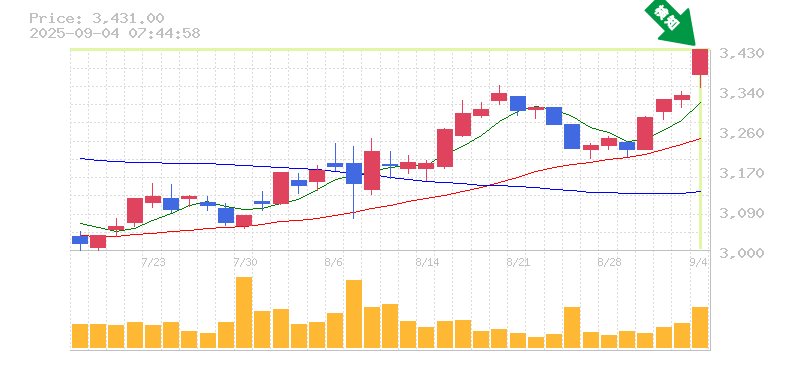 終 値:3431円