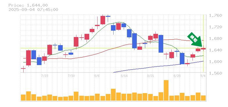 終 値:1644円