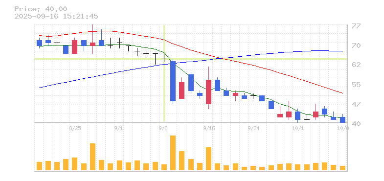 | 株価:64円(-3.03%)前日比:-2 | ||||