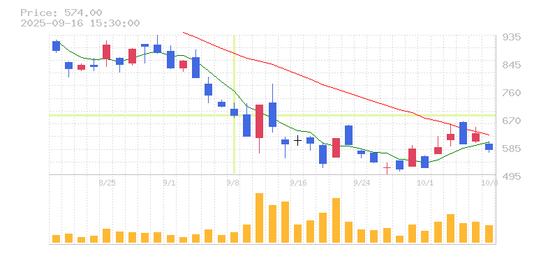 | 701円 | 720円 | 674円 | 682円 | 32,542,200 |