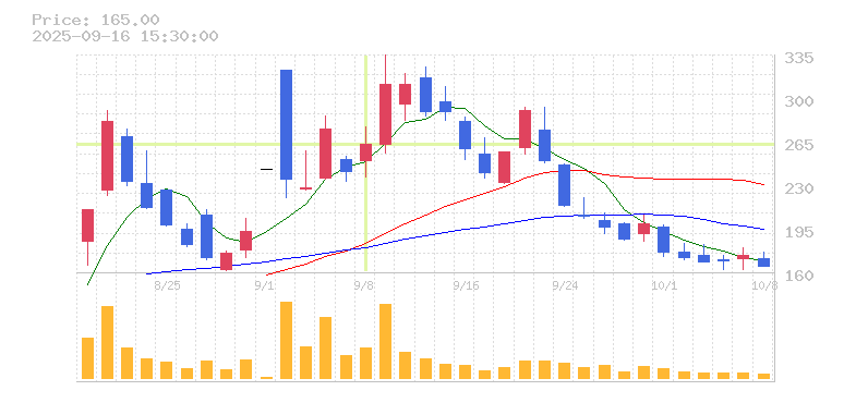 | 株価:263円(9.13%)前日比:+22 | ||||