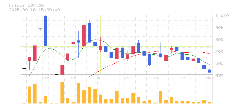 | 株価:462円(-17.79%)前日比:-100 | ||||