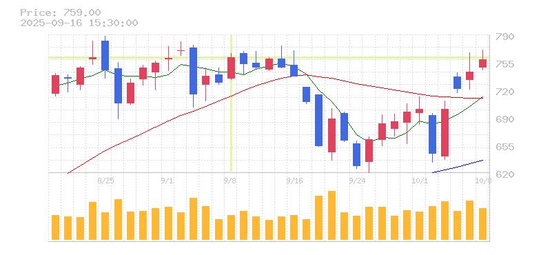 | 株価:762円(4.14%)前日比:+30.3 | ||||