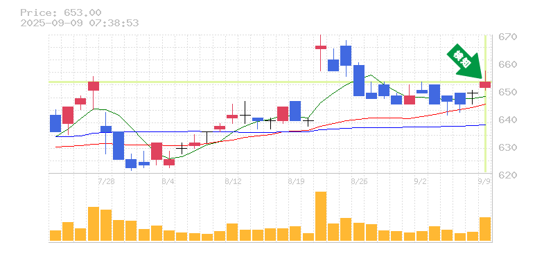 終 値:653円
