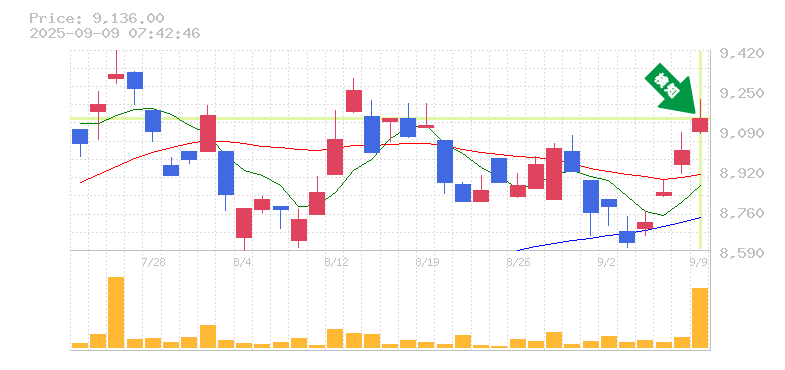 終 値:9136円